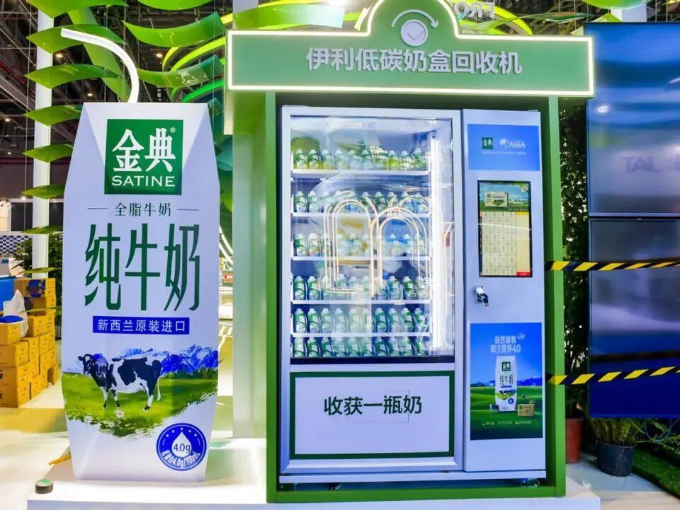 伊利在展廳設置奶盒回收機倡導綠色低碳生活
