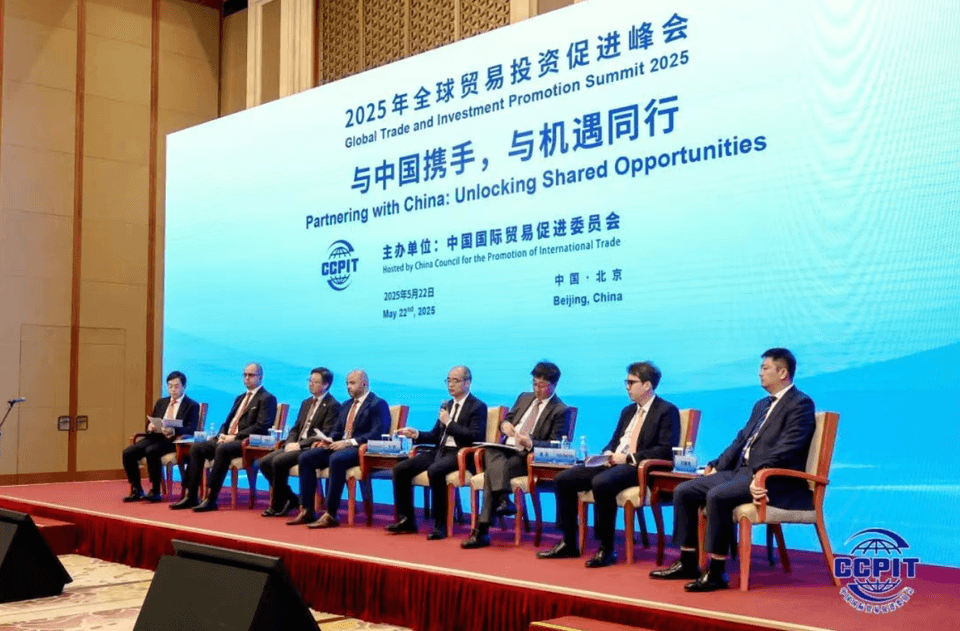 5月22日,由中國貿促會主辦的2025年全球貿易投資促進峰會在北京釣魚臺國賓館隆重召開,國家副主席韓正出席開幕式并致辭。本次峰會以“擁抱數智時代,攜手共同發展”為主題,是全球工商界對話交流、深化互信、共話發展的重要機制性平臺。來自外國政府部門、國際組織、外國商協會、全球貿促機構的負責人及中外企業代表共800余人參會。