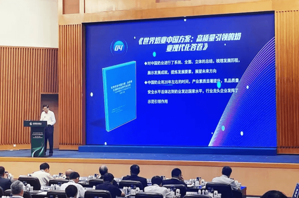 大會(huì)上,中國農(nóng)業(yè)科學(xué)院原黨組書記、國家食物與營養(yǎng)咨詢委員會(huì)主任、中國奶業(yè)協(xié)會(huì)戰(zhàn)略發(fā)展委員會(huì)名譽(yù)副主任陳萌山發(fā)布了《世界奶業(yè)中國方案:高質(zhì)量引領(lǐng)的奶業(yè)現(xiàn)代化答卷》(下文稱《報(bào)告》)等四大課題研究報(bào)告。他說,這份報(bào)告提出,中國奶業(yè)用20年左右的時(shí)間,產(chǎn)業(yè)素質(zhì)顯著提升,乳品質(zhì)量安全水平總體達(dá)到奶業(yè)發(fā)達(dá)國家水平,行業(yè)龍頭企業(yè)發(fā)揮了示范引領(lǐng)作用。